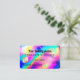 This girly and glamourous eyelash lashes extensions business card gift card is perfect for a stylish and trendy professional businesswoman. It features a faux printed neon unicorn holographic iridescent foil background. The typography is an elegant handwritten thick cursive script with a modern san-serif font to match. The colour scheme includes neon magenta, purple, yellow, teal green, neon blue, neon green, and neon pink. It's chic, pretty, unique, and luxurious; the perfect way to advertise your business and stylize your marketing and advertisement material for your customers.