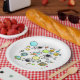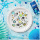 Paper plates with a cute and colourful pattern with all kinds of outer space themed elements. Images include astronauts floating around in their white space suits. Stars and planets and cool little rocket ships, spaceships, and satellites. Fun and crazy design.