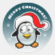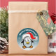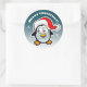 Use your own text to customize these round sticker featuring a funny penguin cartoon with Santa hat and create a truly unique Xmas favour.