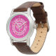 Eat, sleep, play tennis, repeat. In pink and white. Cool slogan on your Watch . White and pink circles with 2 white crossed rackets, yellow tennis balls and customizable name [text] .Great as Christmas stocking stuffer.