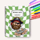 video game controller breaking trough a green and white retro chequered background. To make it extra special, it is also monogrammed and personalized with name or initials or any text you like. This cool notebook is perfect for video games lovers, a great addition to your kids school supplies.