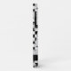 Cool iPhone case printed with a pizza slices and herbs illustration over a black and white chequered background. Perfect for Italian chefs, pizza chefs and pizza lovers