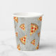 Cool and fun pizza slices pattern on rustic distressed grey. Juicy illustrated pizza with crunchy crust, cheese, salami, champignon mushrooms, olives and a sprinkle of oregano.