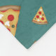 Cool and fun pizza slices pattern on rustic dark teal green blue - unique gift for foodies, restaurateurs, pizzerias.. Juicy vector made pizza with crunchy crust, cheese, salami, champignon mushrooms, olives and a sprinkle of oregano.