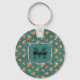 Cool pizza slices vintage teal pattern Monogram Keychain