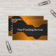Best business card for a Plumber in a unique design with copper colored metallic look background graphic that catches the eye and helps you stand out.