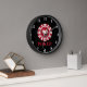 The size of the clock is dramatic and the abstract alcohol ink design is soothing and intricate at the same time. I chose the black frame that adds pop to the blue and gold design. The gold printing would be better in a slightly darker or larger font. I love it and I’m looking for just the right place in ny new apartment. I would recommend this clock for a personal gift or a present. I feel that the quality is excellent for the money! I’m a bit of a clock nut so I’m pretty particular about my purchases. The clock is larger in diameter than many if the clocks I have, so it stands out very well. I think a slightly darker printing color and a moderately larger size would best suit a professional decor or add more impact in a work place item.