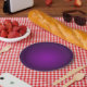 This design features a simple background of brilliant purple in the centre, fading darker and darker towards the outside edge where it is black with a light grain texture for a more natural feel.