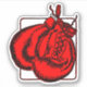 A vinyl decal with an image of a pair of red boxing gloves shaded and outlined in black. The gloves are partially framed by a reddish black outline in the shape of a square. Stylish design.