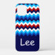 A monogrammed phone case featuring a colourful, trendy pattern design of red, white, and blue chevrons. Create the perfect customized gift by clicking the “personalized” button to add a name or custom message in the provided template field. Select the “click to customize further” link to change the font, text size and more.
