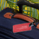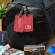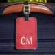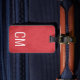 Cool fully customizable luggag tag design with texture red background and bold white monogram. Modern elegant design.