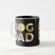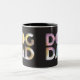 Rien de subtil avec ce chien noir moderne et hip Mug Papa. Des lettres pointues révèlent des formes translucides arrière - plans. Conçu par Quirkytown Creative. Image © Doug Davis. www.zazzle.com/store/QuirkyTownCreative