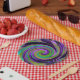 Cool Retro Purple and Chartreuse Liquid Art Swirl Paper Plate