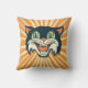 Cool Retro Vintage Halloween Cat Pillow with sun burst background