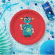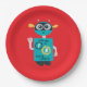 Adorable hand illustrated robot graphics make these birthday plates cool and fun!