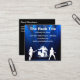 Rock band business cards designed for a band for hire in a cool design with rock band musicians on a lighted stage in the background and classic visiting card double side layout you can customize online.