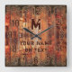 Cool faux Wood Rustic Clock Personalized with YOUR TEXT or Delete. Great for his Rustic Man Cave Wall Decor and practical. Type in his Monogram, Name, Man Cave or YOUR TEXT. Cool rustic Christmas gifts for men and women who love rustic decor. Great for your rustic lake cabin decor, rustic cottage decorating ideas and more. Do you have a garage man cave or rec room man cave? Printed wood boards weathered clock on Large or Small Round clock or Square (shown) Rustic Clocks.