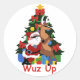 Get into the holiday spirit with these funny Christmas stickers. You wont find anyone cooler than these two. Santa and one of his reindeer leaning on a Christmas tree relaxing.
