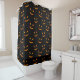 Cool scary Jack O'Lantern face Halloween pattern Shower Curtain. Evil looking orange and yellow burning Pumpkin face on black.