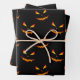 Cool scary Jack O'Lantern face Halloween pattern Wrapping Paper Sheets. Evil looking orange and yellow burning Pumpkin face on black Halloween Party Supplies Gift Wrap.