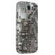 A cool silver sequins metallic look background pattern close up of a retro sparkling, shiny disco style mirror ball globe. This unique Samsung Galaxy mobile cell phone case is decorative, cool, and fun! Note that this fun design is not actually made with sequins or glitter but has the look of it.