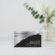 Cool business cards template designed with artwork that mimics a silver metallic design and blue backdrop colour. Presented on glossy business card stock for the automotive industry, construction, or industrial services such as welding or metalwork.