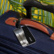 Cool unique luggage tags designed with digitally printed artwork that mimics the look of silver metal and monogram space you can use to display your name along with phrase that identifies who the luggage bag belongs to and making your bag much easier to recognize while telling others it's not their bag.