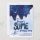 This fun and playful slime birthday party invitation is the perfect design to get your sons guests excited for his special day. It features faux printed bright slate blue sparkly glitter oozing slime with custom blue gooey slime typography, "Slime," on top of a simple light sky blue watercolor background. It's cute, unique, and cool; the perfect design for an amazing event!