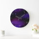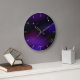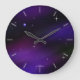 This cool clock features a dark spacescape scene with stars and tiny planets. This unique space scene artwork is mostly black with nebulous areas of blue and purple. Perfect gift for the sci-fi or space buff. The hours are marked with light marks, but no numbers for a simple and clean appearance. This space look clock is great as-is, but feel free to customize it too with your own text and/or images for a custom creation.