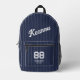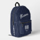 Cool Sporty Stylish Navy Blue Stripes Name Number Backpack