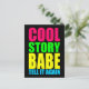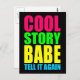 Cool Story Babe Tell It Again in bright neon colour block font on black.