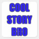 Cool story bro in blue lettering with black shadowing around. Show your sarcasm.