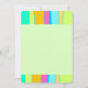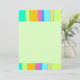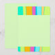 This flat note card showcases a cool design composed by vibrant colours vertical organic stripes up and down in blue, pink, orange, blue, lime green and turquoise, while an editable plain pale light green writing space at the middle. Back side is also this green.