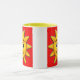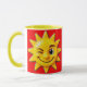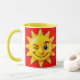 On a personalized mug, a sun against an orange background, makes us a warm wink, ideal to start the day, have a coffee break, relax with a herbal tea.