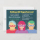 A cool poster like invitation design to invite the superheroes over for a birthday party. It features minimalist male and female superheroes with masks. Personalise easily with party details.