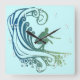 Cool Surfer Riding Teal Blue Ocean Waves Square Wall Clock
