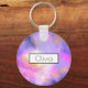 A dreamy personalized keychain with a nice combination of soft pastels and bright colours. A colourful abstract painting with a cosmic space image in pink, purple and yellow watercolors. The colours blend and mix together creating luminous ethereal clouds with little twinkling stars peppered throughout.