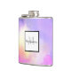 A dreamy personalized flask with a nice combination of soft pastels and bright colours. A colourful abstract painting with a cosmic space image in pink, purple and yellow watercolors.  The colours blend and mix together creating luminous ethereal clouds with little twinkling stars peppered throughout.  personalize with a name and initial.