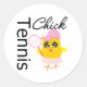 Tennis Chick T-Shirts, Apparel and Gifts featuring a cute yellow chick sporting a pink tennis outfit and racquet ready for a game of tennis. Perfect gift for the avid tennis player chick.