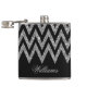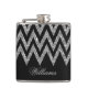Cool trendy chevron zigzag silver faux glitter hip flask