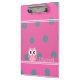 Cool Trendy Polka Dots With Cute Owl-Personalized Clipboard
