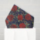This beautiful navy blue, red and gold design features a fun pattern of glitchy red roses on a damask pattern.