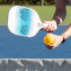 Play in style with this cool pickleball paddle featuring a beach scene of blue sky and palm trees and your custom text. Add your name, monogram, phone number, club name, etc. to personalize. You're sure to take your game up a notch with this paddle that's perfect for beginner to advanced players.