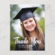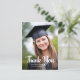 This simple and modern graduation thank you postcard features a full bleed photo on the front, with the words "thank you" in trendy white typography. There is a spot for a personal message of thanks from the grad on the back of the postcard.
