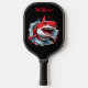 This cool pickleball paddle design features a watercolor shark head on a black background, with your name or monogram in bold red text for a look that is simple and stylish, yet trendy. It makes the perfect gift for Christmas, birthday, graduation, and more.