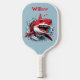 This cool pickleball paddle design features a watercolor shark head on a light steel blue background, with your name or monogram in bold red text for a look that is simple and stylish, yet trendy. It makes the perfect gift for Christmas, birthday, graduation, and more.