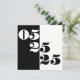 Wow your guests with your special wedding date and this very unique square Save the Date which emphasizes your date. This typography-based design puts the cool date front and centre. White and black and black on white colour block numerals are striking. The reverse side is white on black and features all the essential details including a QR code. A dramatic save the date for any date with repeating numbers, such as 082424, or to call attention to an auspicious or especially meaningful date.