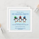 A trio of penguins ice skate on a little pond against a snowy background of icy blue, inviting your guests to a fun ice skating themed party.