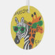 Cool Zebra Giraffe Cartoon Illustration Glass Ornament