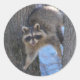 En prenant une pause dans l'hibernation hivernale, un raton laveur est pris en équilibre entre les troncs d'arbres.